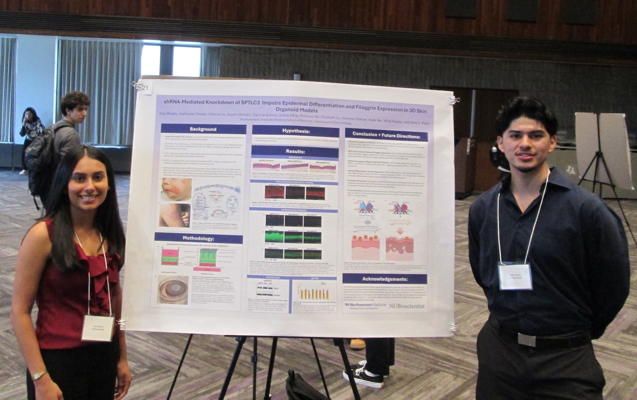 NU undergrad students, Diya Bhakta and Nate Chavez from the Bioscientist Program presented their summer research from our lab at the Arch Scholars Research Symposium, featuring projects on atopic dermatitis, ceramide pathways, and the serine palmitoyltransferase (SPT) complex that advance understanding of skin barrier biology.